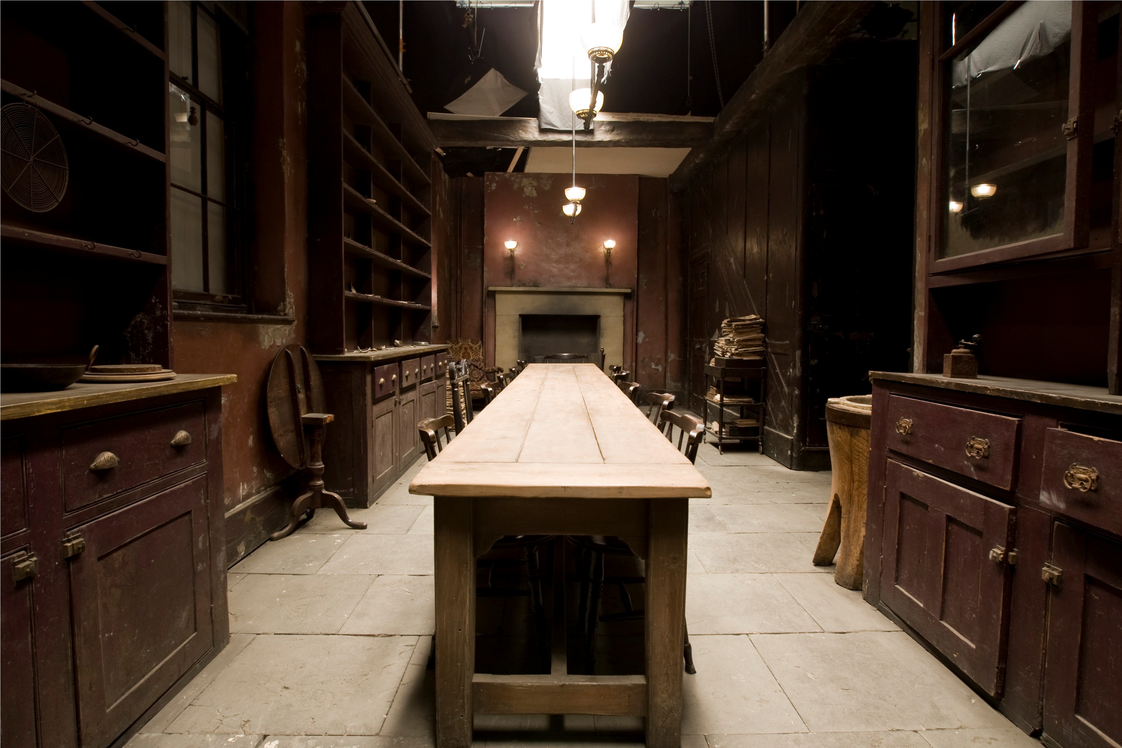 Судя по фильму, кухня представляет собой вытянутое помещение, по ширине достаточное лишь для того, чтобы поставить там стол и пару шкафов.
