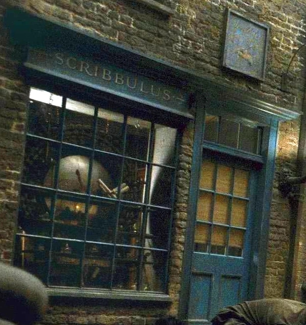 Полное название этого магазина в книгах отсутствует, в них он описан лишь как «Лавка письменных принадлежностей». Само название появляется впервые в фильме «Тур по Косому переулку» на втором диске DVD-релиза «Гарри Поттер и Тайная комната (фильм)».