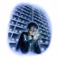 Поттер находит нужный стеллаж, но проход рядом с ним оказывается совершенно пустым, без всяких признаков присутствия Сириуса или следов борьбы. Обескураженный мальчик начинает метаться по залу, и тут Рон обращает его внимание на один из шариков, лежащих на стеллаже, — с ярлычком, на котором рядом стоят имена самого Гарри Поттера (под вопросом) и Тёмного Лорда. Надеясь, что это как-то сможет оправдать их путешествие, мальчик берёт шарик, и тут раздаётся голос: