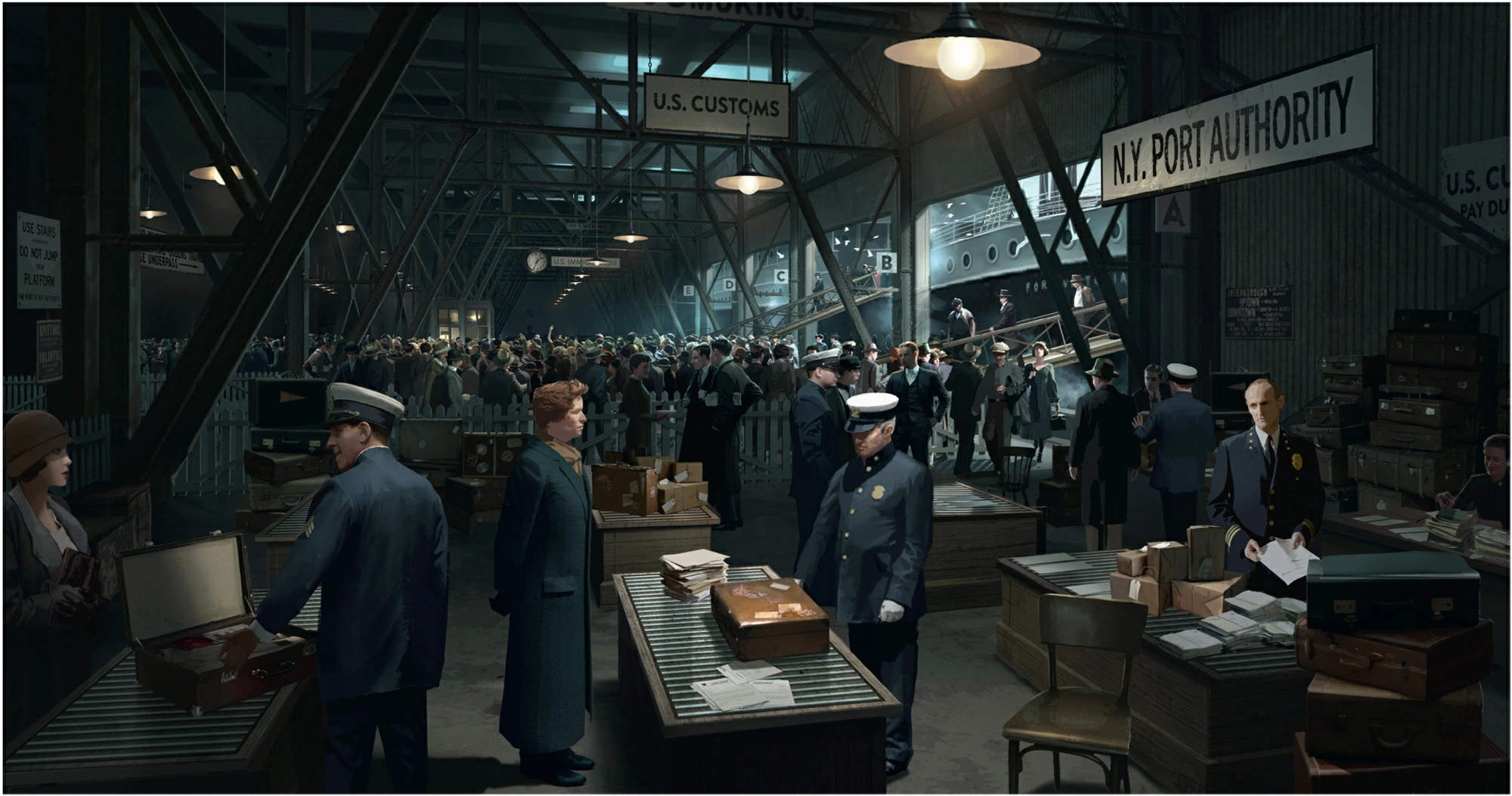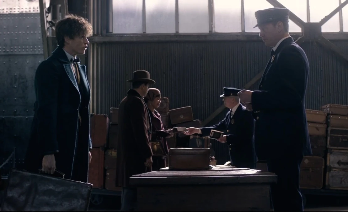 Ньют Саламандер проходит таможенный досмотр по прибытии в Нью-Йорк