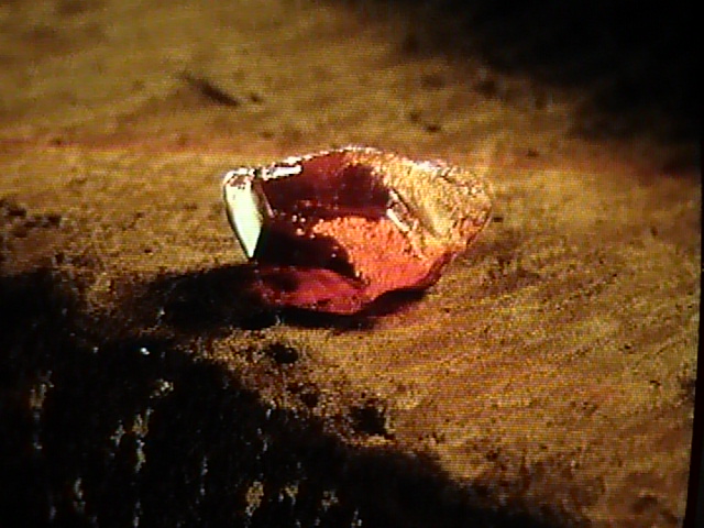 - В книге камень описан как «кроваво-красный».[1]