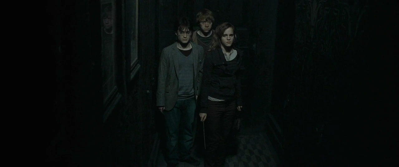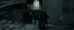 Гарри, Рон и Гермиона используют Ступефай против Пожирателей Смерти