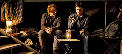 Гарри Поттер использует Энгоргио, чтобы протестировать палочку, которую Рон Уизли забрал у егерей