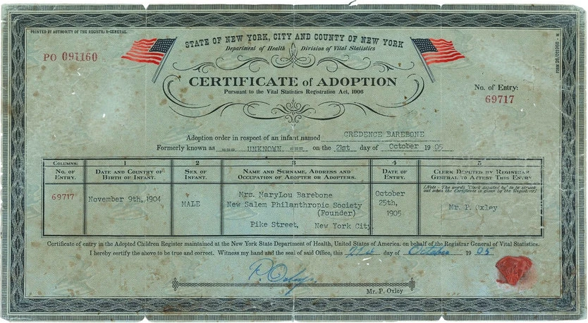 This adoption paper concerned Aurelius Dumbledore, who had been renamed "Credence Barebone" by his adoptive mother Mary Lou Barebone.[2]