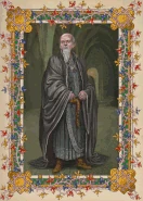 He created illustrations of the Hogwarts House ghosts[3][4] and Hogwarts founders[5][6] and his pieces are seen animated on Pottermore.[7] Venables was specifically requested to use a "book of hours" approach, capturing a medieval look with an ornate border.[6]