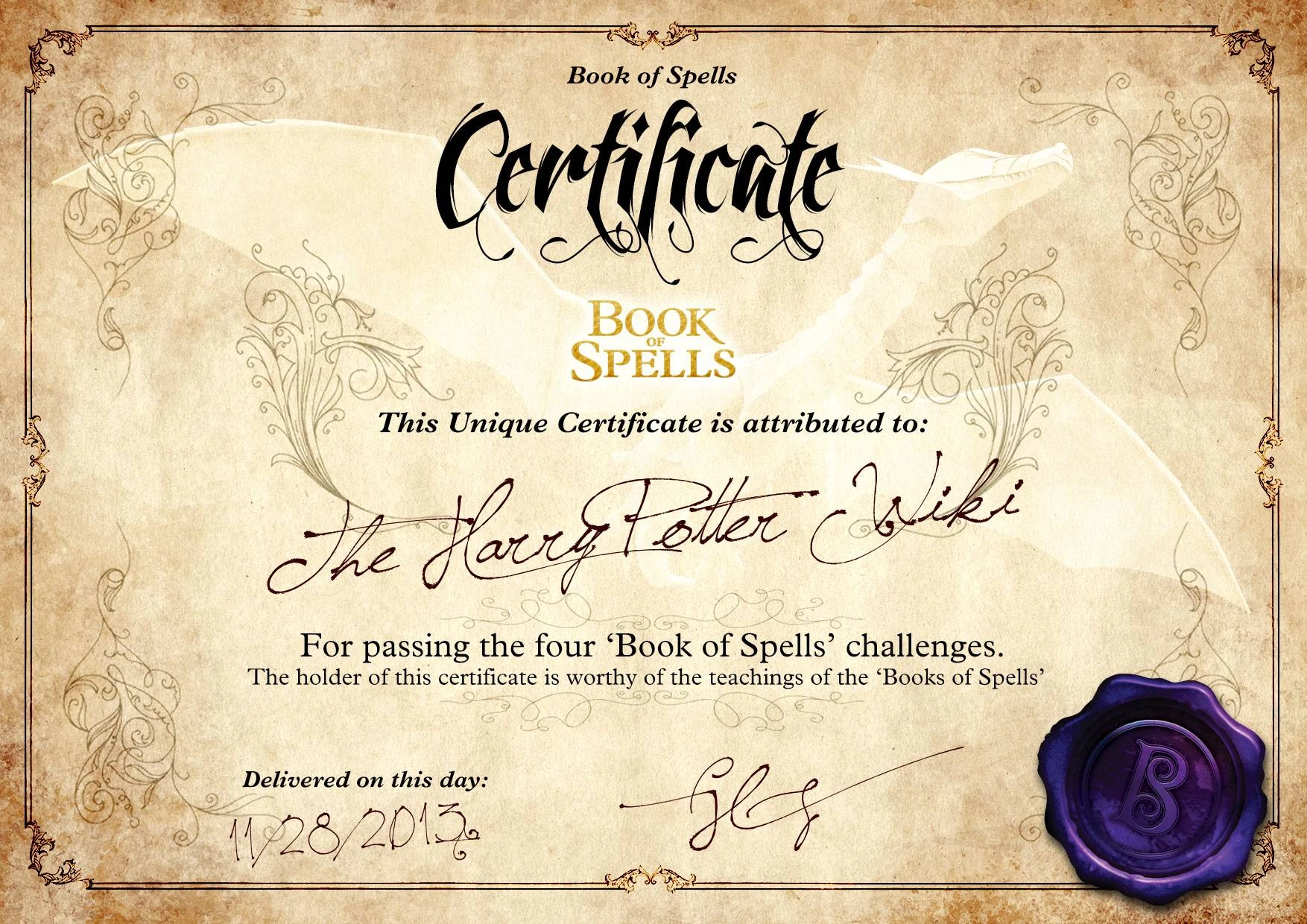 Each player is given a certificate for completing the challenges