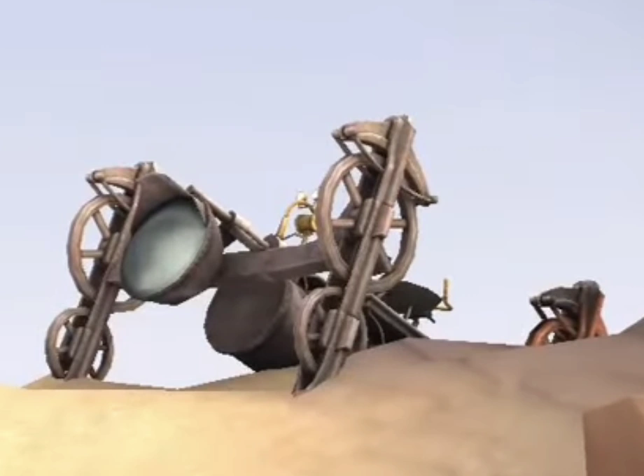 This mine cart was one of several used for transportation by Gringotts Wizarding Bank. In 1992, it fell through the air and crashed in the Egyptian desert through unknown means. It was also cursed so that anyone who approached it while motivated by greed would be transformed into a sphinx. However, those who were not motivated by greed could safely approach the cart, where they would be confronted by an abnormally large sphinx that presented them with a riddle that had to be solved to break the curse. The mine cart's curse was broken by Jacob's sibling in 1992.[1]