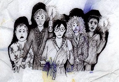 Dean Thomas was originally a prominent character, and was better friends with the main trio. This is an early sketch drawn by JKR of how she originally wrote the scene "Midnight Duel" which originally included Dean Thomas, however in publishing he was cut