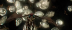 The Doxy was covered in coarse black hair, and had an additional set of arms and legs. Doxies had shiny beetle-like wings, and a double row of sharp teeth.[1] If bitten, a wizard or witch should take an antidote immediately, as their venom was highly poisonous.[2] Doxies buried their eggs underground, and Doxy Queens could lay up to five-hundred at once. The eggs generally hatched in two to three weeks.[1]