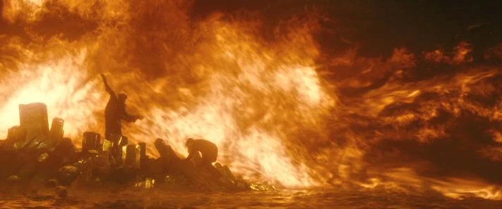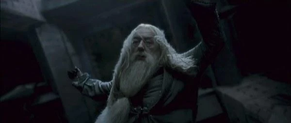 Dumbledore conjuring a Firestorm to scorch the Inferi