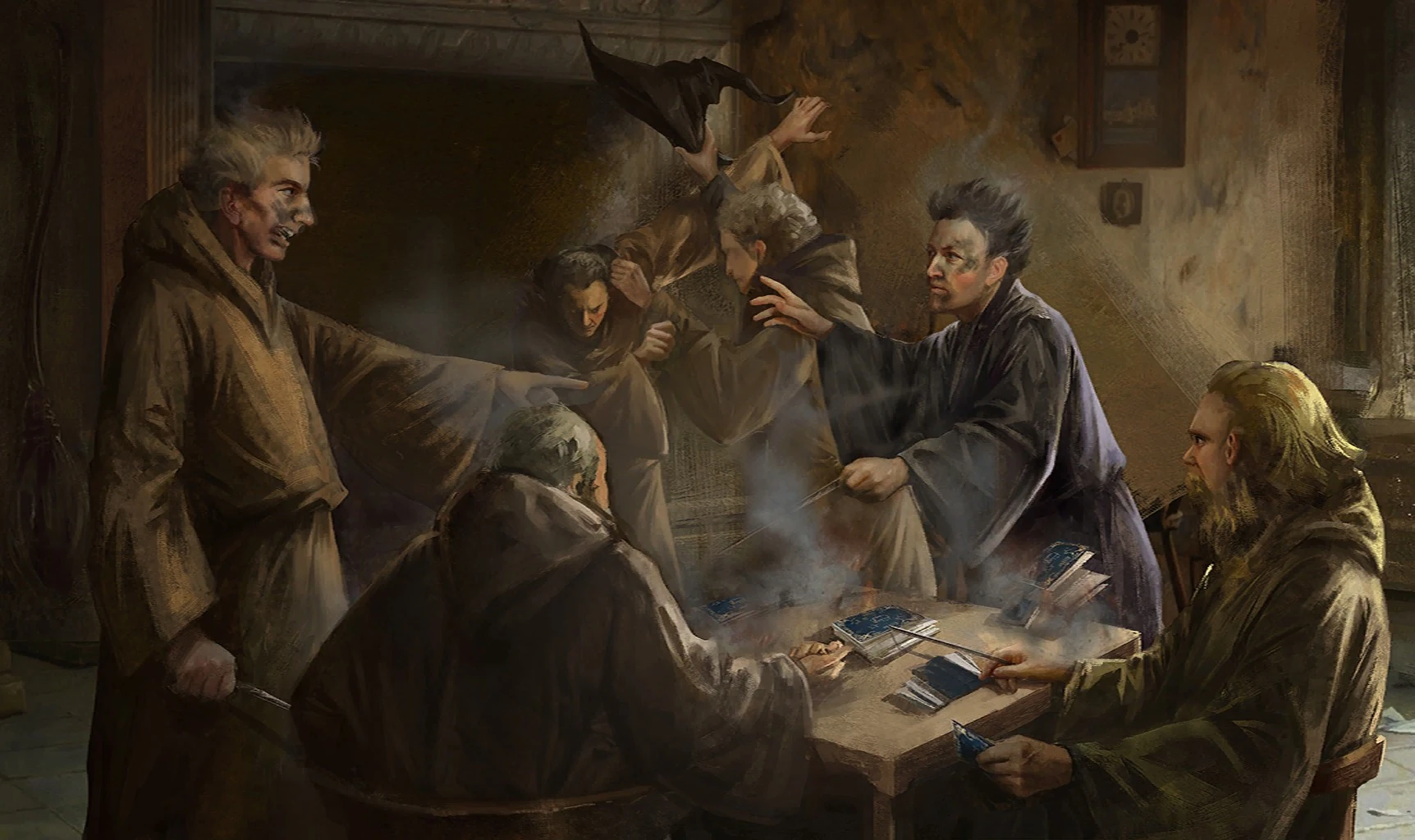 A group of monks playing Exploding Snap