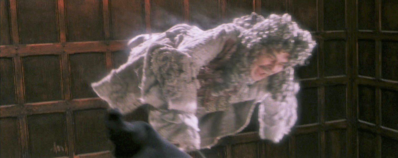 Ghosts were unable to have much physical influence. They were visible, and appeared as a greyish-silver apparition of their former (living) selves. They passed through solid objects without damaging themselves or the material, but created disturbances in water, fire and air. The temperature dropped in the immediate vicinity of a ghost. Their presence could also turn flames blue.[4]