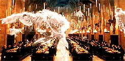 - "About twenty ghosts had just streamed through the back wall. Pearly-white and slightly transparent, they glided across the room talking to one another and hardly glancing at the first-years."