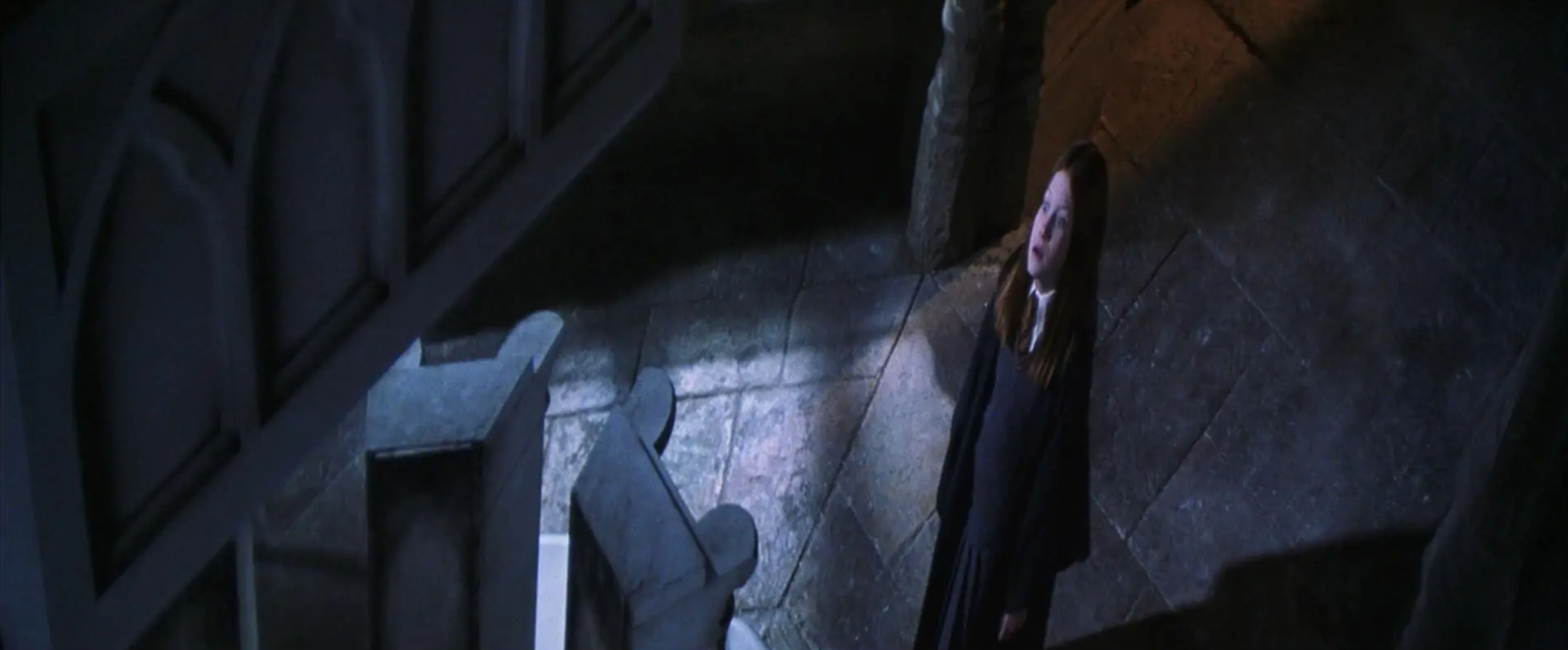 Ginny attended Hogwarts School of Witchcraft and Wizardry from 1992 to 1999, a year beneath the famous Harry Potter, and was sorted into Gryffindor House. During her first year, she developed a long-standing crush on Harry Potter and came under the influence of the memory of Tom Riddle's sixteen-year-old self, who was preserved in a diary, which forced Ginny to re-open the Chamber of Secrets, endangering the lives of many students, including her own.