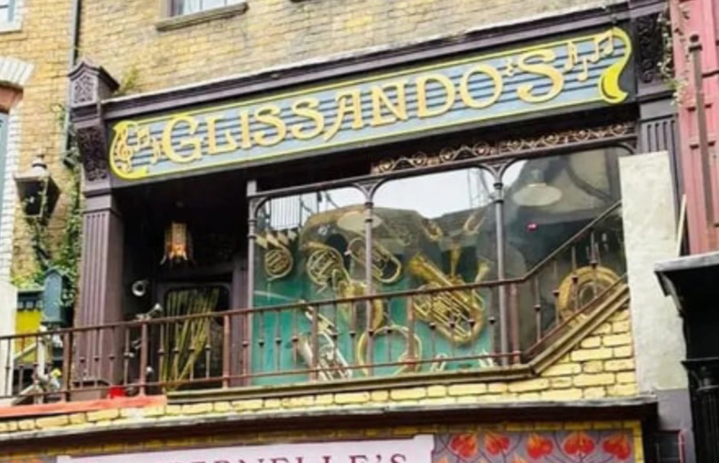 Glissando's was a wizarding music shop in Diagon Alley established in or before the 20th century. It was located in the same building as Madam Primpernelle's Beautifying Potions on the second storey, and sold brass wind instruments such as trumpets by August 1991.[1]