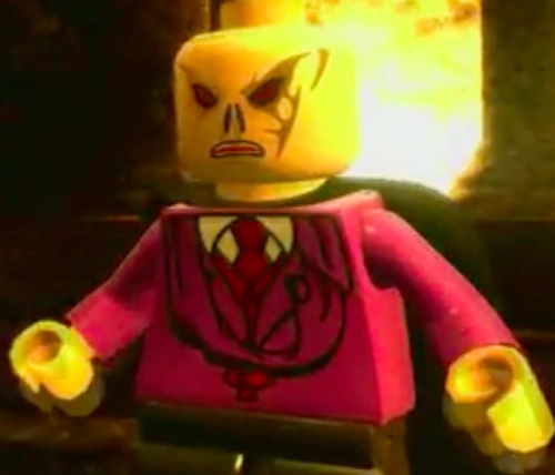 Voldemort on the back of Quirrell's head as a LEGO minifigure.