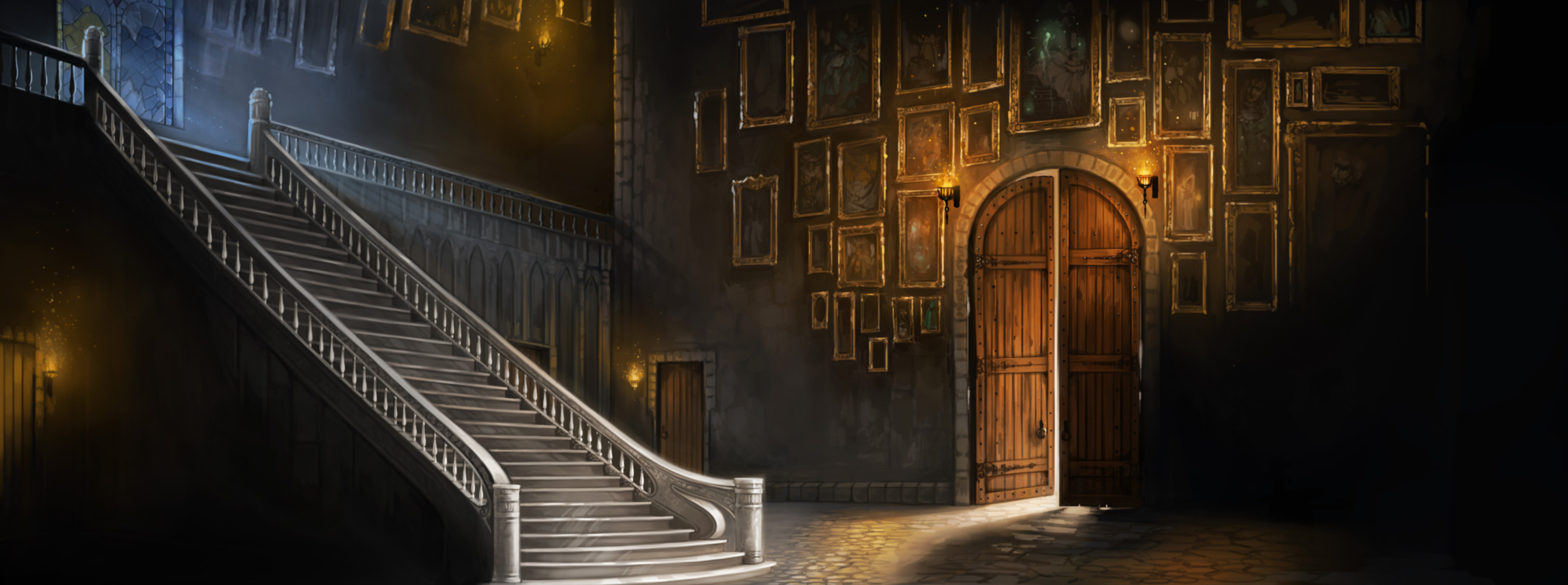 This was a big chamber which connected the Viaduct to the first floor by a staircase that led to the Tapestry Corridor. There was also an archway that led down the Potions staircase to the Dungeon Corridor.