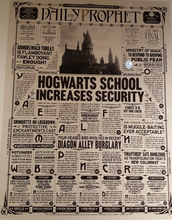On 29 November 1926, the Daily Prophet reported that security had to be increased at Hogwarts in response to the growing threat of Gellert Grindelwald's impact on the Global Wizarding War. Measures included Headmaster Armando Dippet holding an emergency meeting with worried parents and students being sent home early.[49]