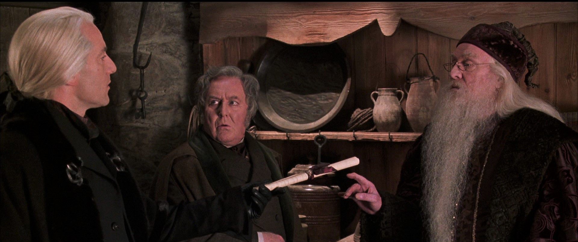 Harry with Dumbledore and Mr Malfoy after having defeated the Basilisk in the Chamber of Secrets