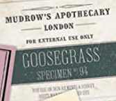 Mudrow's Apothecary was a London Apothecary, that by 1927 sold items used in the care and maintenance of magical beasts. such as goosegrass.[1]