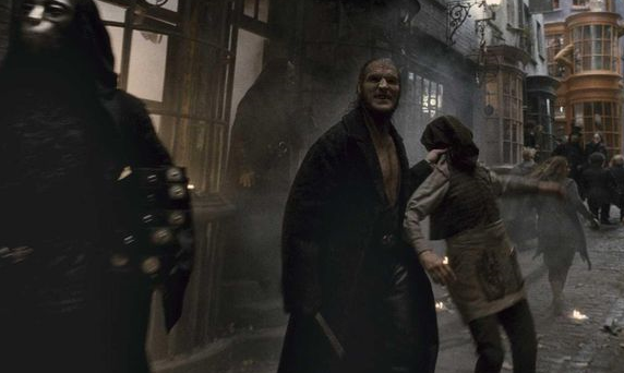 - In the film adaptation of Harry Potter and the Half-Blood Prince, Death Eaters attacked the store directly, causing an explosion that left it in a wrecked state; debris, products and furniture lay all over the place, the windows were broken open instead of being boarded up, and the door was unlocked. Unlike in the book, Ollivander clearly struggled while being taken by Fenrir Greyback, while two Death Eaters took with them stocks of wands as booty. The trio discovered the mess when they saw the state it was left in. It was while looking around the crime scene that Ron noticed Draco and Narcissa Malfoy moving towards Knockturn Alley.