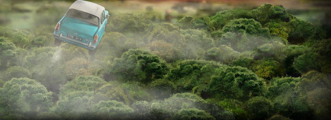 Harry Potter crossing a river within the forest in 1992