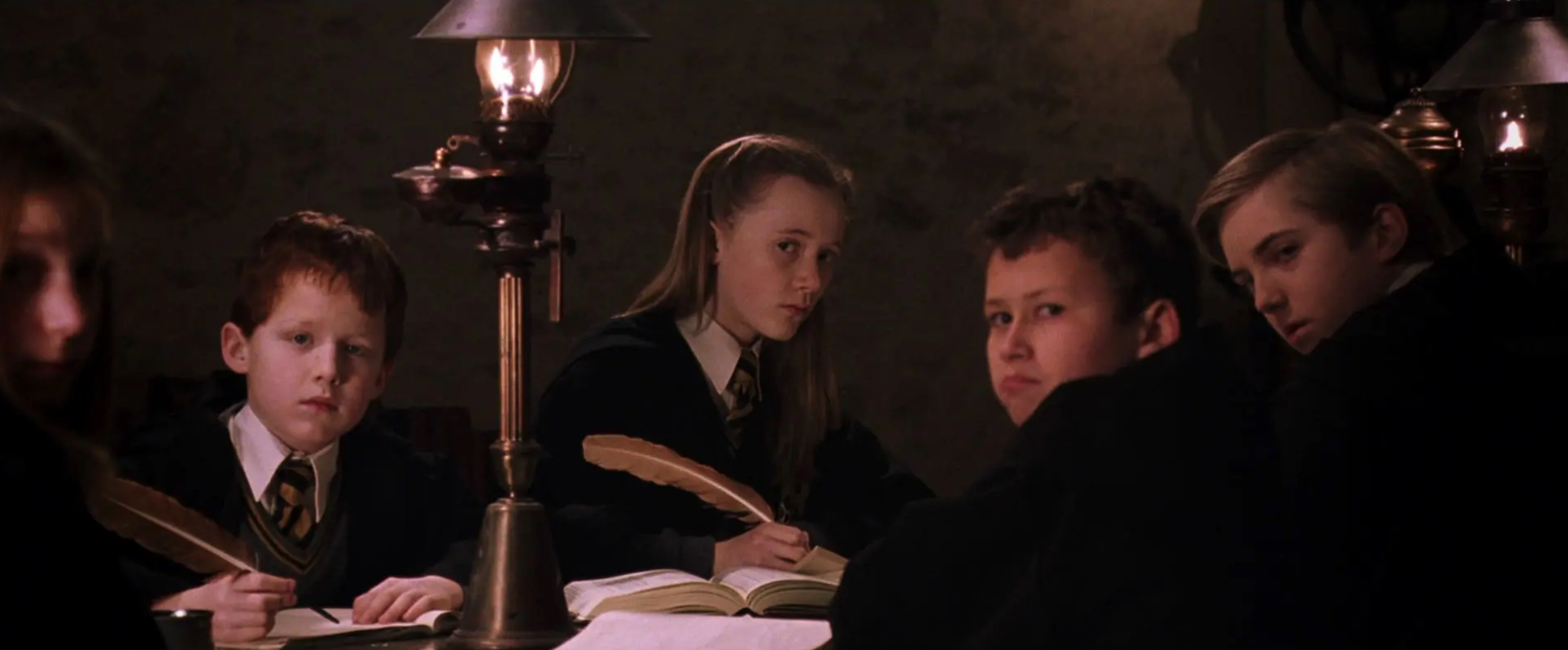 - In the film adaptation of Harry Potter and the Chamber of Secrets, in the Duelling Club scene, Harry says three phrases to the snake, which are as follows: