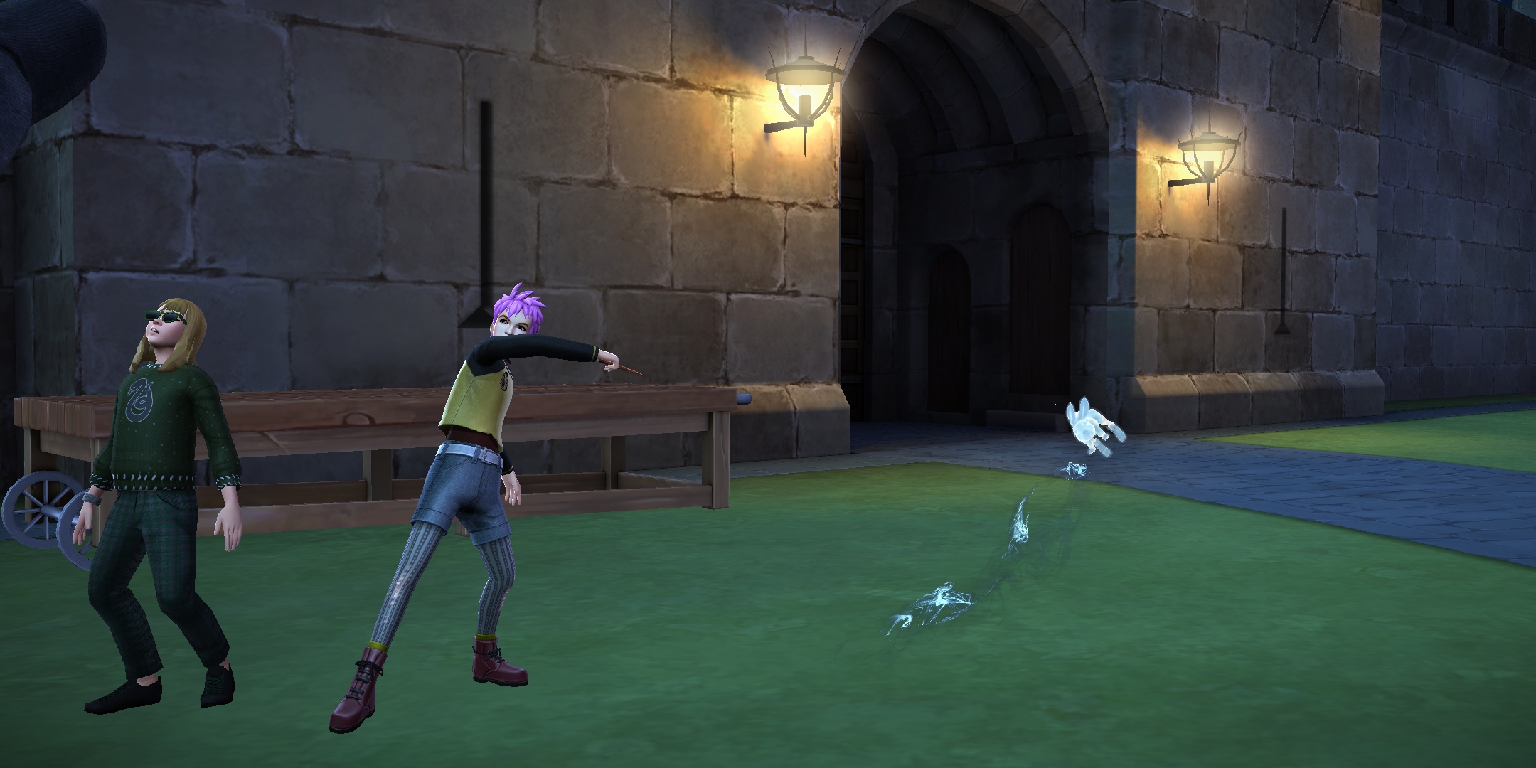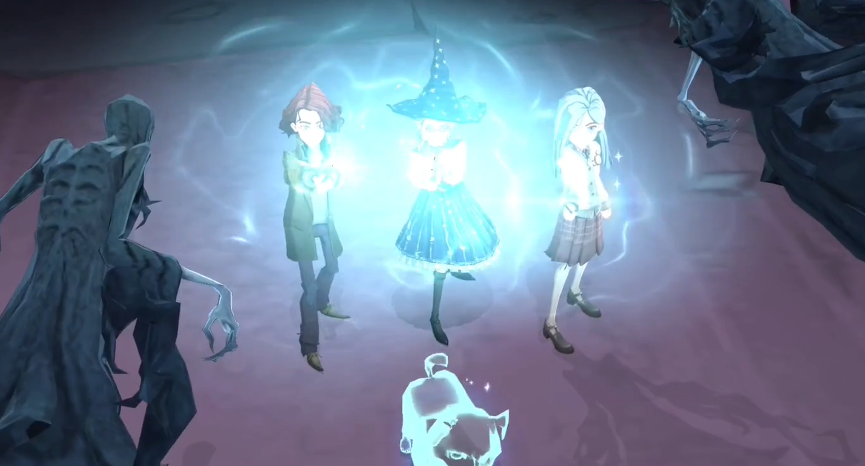 The students casting the Patronus Charm in the caravan dungeon