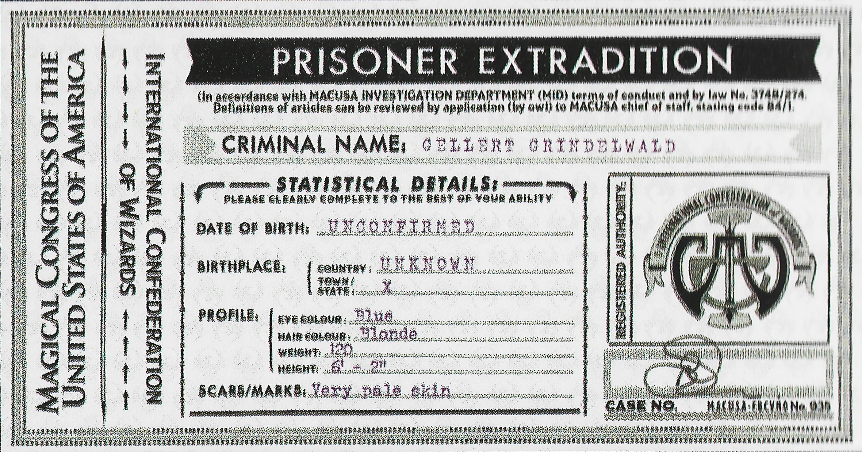 In 1927, a Prisoner Extradition Form was issued for the transfer of Gellert Grindelwald[1]