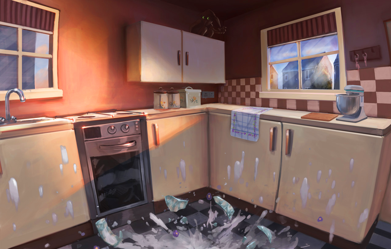 Dobby smashing a pudding with the Hover Charm, which Harry Potter was blamed for
