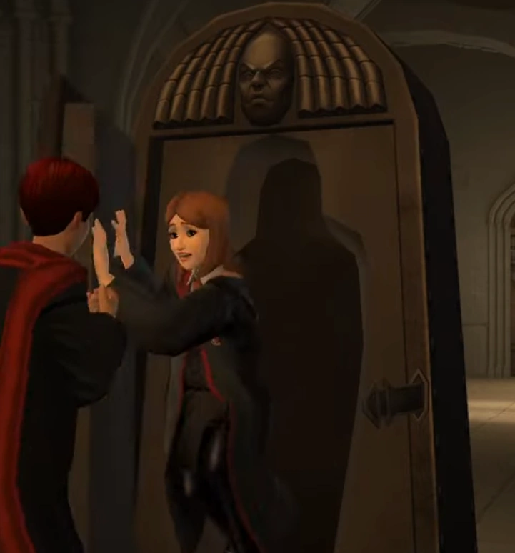 The student later found herself trapped in the Iron Maiden of Doom when she underestimated the curse that was placed on the object. She had to be rescued by Jacob's sibling, and accidentally revealed herself when she told them exactly where the release button on the iron maiden was. She had dropped the helm on the ground when she was trapped, and, as she went to pick it up, Jacob's sibling noticed that it bore the same insignia as the cursed sword. Later, when Jacob's sibling was trying to help Merula Snyde, who was being chased by a black Bat-Bogey, the girl revealed how to stop the curse and also that the bottle was cursed with a variation of the Bat-Bogey Hex. However, she ran off before Jacob's sibling could question her further.[2]