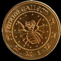 One other possible explanation is in the fact that the Galleon was worth about 6677ʛ in today's money in the 1260s,[25] and therefore suffered inflation over the centuries, much as the British pound sterling did, which originally represented the value of an actual pound of silver in Medieval times (now worth about £240). Therefore, modern Galleons, rather than being made of gold, must therefore be made of a gold-coloured alloy like the U.S. Sacagawea dollar or the Canadian loonie. Taking the modern value of about five British pounds per Galleon today would indicate the gold Galleon in the 1260s would have been worth over £33,000 in today's money, equivalent to about 20 troy ounces of gold. And, just like American 50c, 25c, and 10c pieces, which used to be made of silver but which have been subsequently substituted with a cheaper silver-coloured substitute while retaining their former sizes, modern Galleons may therefore be the same size a 20-troy-ounce gold coin would be, explaining their impressive-looking size.