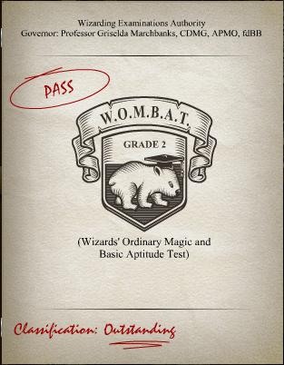 优秀 (Outstanding)是普通巫师等级考试、终极巫师考试和巫师普通魔法及基础资质测试中的六种考试成绩之一,属于合格成绩。“优秀”是所有成绩中等级最高的,优于“良好”,简写为字母“O”。