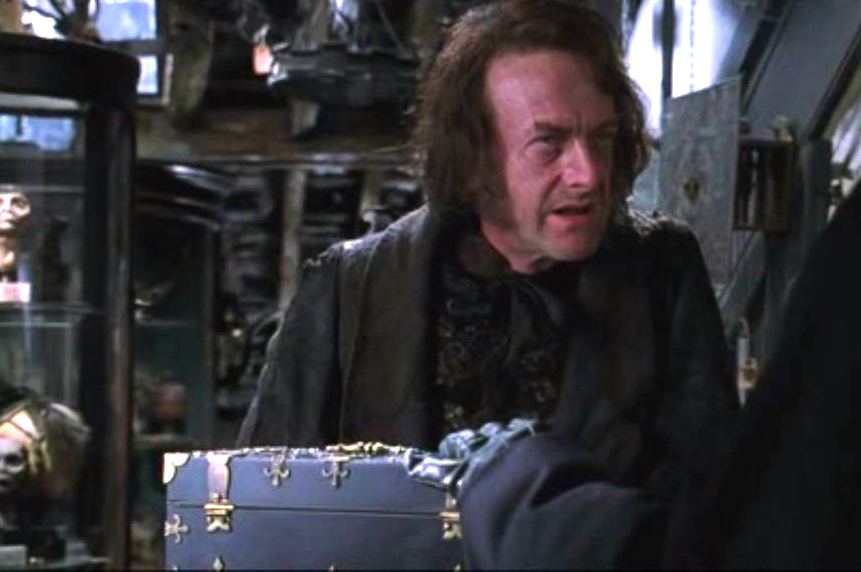 1925年末至1926年初之间,梅洛普·冈特与老汤姆·里德尔私奔。在这之后不久,汤姆便抛弃了她和他们尚未出生的儿子回到里德尔府,留下梅洛普一人孤独、贫困地生活。她身上唯一有价值的财物就是一个刻着蛇形字母“S”的一个沉甸甸的金色挂坠盒。这是她的祖先萨拉查·斯莱特林留下的遗物。卡拉克塔库斯·博克是个精明的生意人,却并不是一个善良的人。根据赫普兹巴·史密斯后来的说法,博克“没付给她几个钱”就从梅洛普手中买下了挂坠盒。博克也承认,自己只给了梅洛普十个加隆,占了梅洛普无知和贫穷的便宜[3]。一段时间以后,博克又将挂坠盒转卖给了赫普兹巴·史密斯。她“花了高价”,因为她不想错过这件真正的珍宝[4]。博克在转卖挂坠盒的过程中赚了一大笔钱,但他无法想象这件特殊传家宝的重要性,也无法想象它会在多年后如何影响自己的生意。
