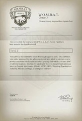 | 兹证明您未通过一级W.O.M.B.A.T.测试,成绩为 | This is to certify that you have failed W.O.M.B.A.T. Grade 1 and have been awarded the classification of |