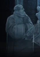 作为一个幽灵,胖修士和其他的幽灵一样是半透明的珍珠白色[2]。他初看上去像个僧人[2],身材矮胖[2]。