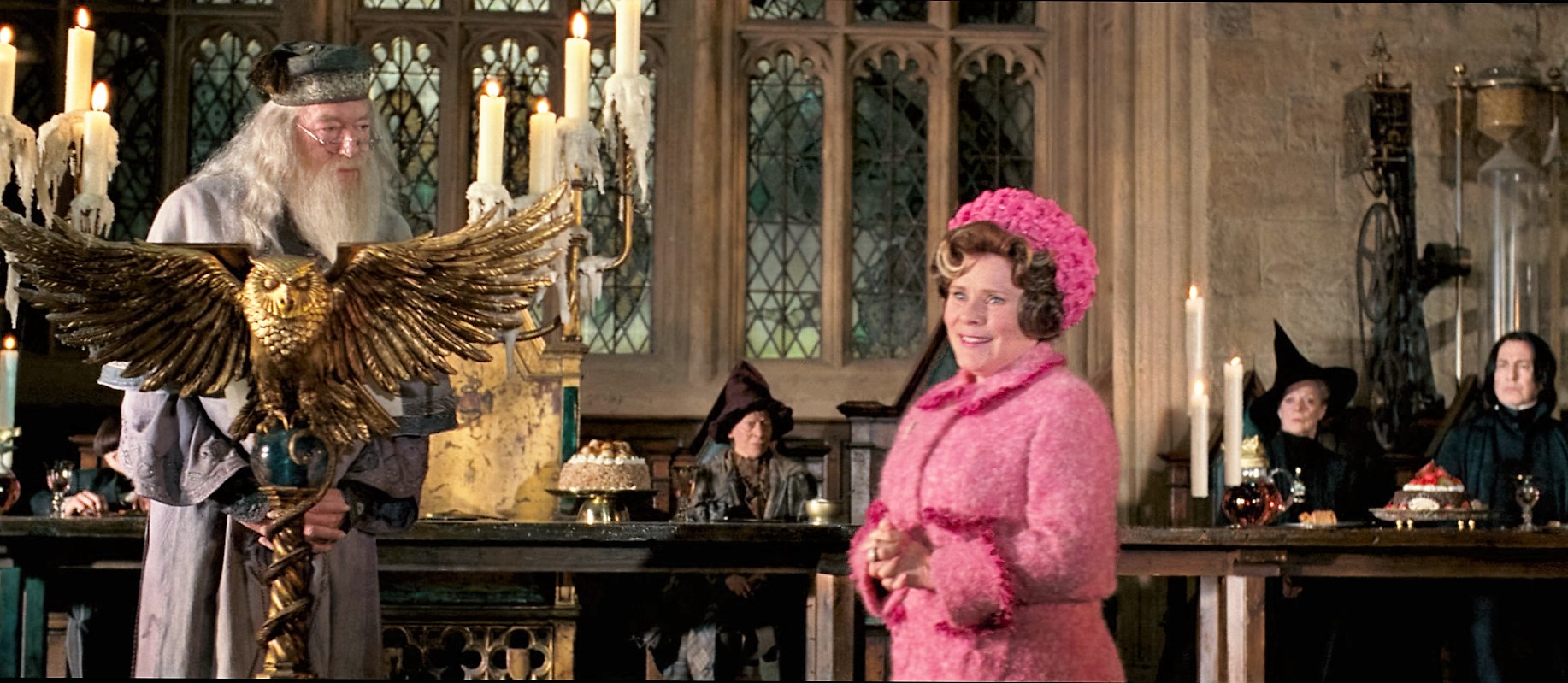 新黑魔法防御术教师多洛雷斯·乌姆里奇干预邓布利多对学校的管理。