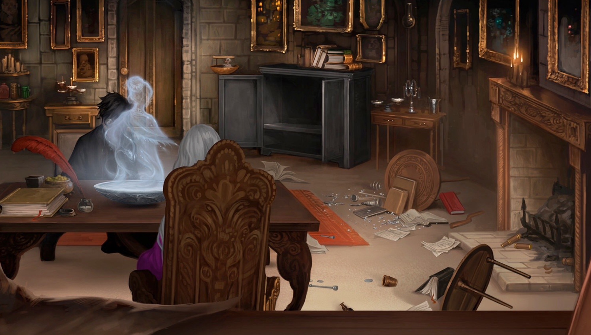 在一间教室里,邓布利多遇见坐在旧课桌上的莉塔,两人彼此心怀戒备。一天晚上,邓布利多来到了有求必应屋,扯下厄里斯魔镜上的天鹅绒,在魔镜中看到了自己与格林德沃年轻时立下血盟的场景。[19]